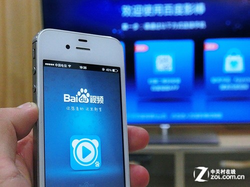 首先我们将平板电视的信号输入源切换到相应的HDMI接口,这样就会出现上图这样的欢迎界面。百度影棒需要智能手机或iPad安装“百度视频”这款APP来支持。下载安装百度视频App有三种方式:如果您手机上已经安装有“百度视频”这款APP,直接打开就可以了;如果没有安装,则可以通过扫描二维码或者在苹果App Store商店以及安卓各个软件商店搜索下载就可以了。