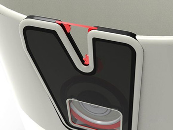 能让锅盖站立的手柄,L型结构可以充当支架使用,让锅盖立起来。而且锅盖上蒸汽冷凝后的水还可以通过接口流入到手柄内的储水盒里,避免了流到台面上的麻烦。