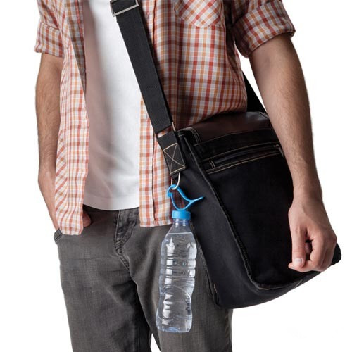 瓶盖上是一只小鸟的轮廓,替换掉矿泉水瓶上的盖子,即可挂在包上随身携带。