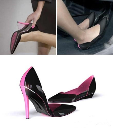 只要轻轻摁一下按钮,就可以将高跟鞋变成平底鞋,MM们开车、骑车、跳舞、走路都没有烦恼了。