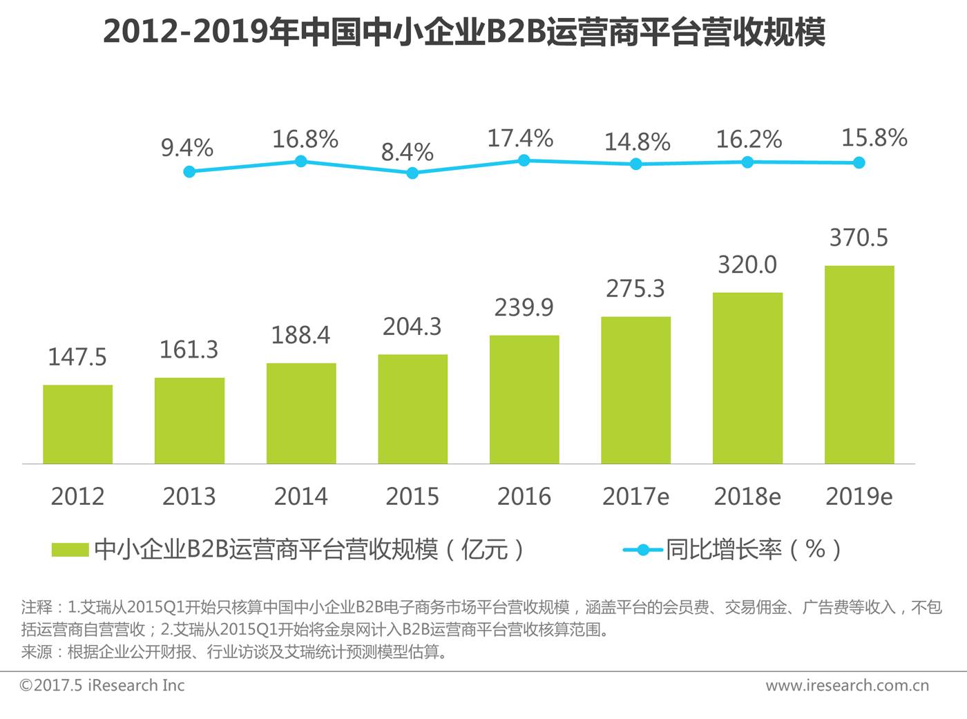 2016年中国电商B2B行业市场规模,中小企业增长17.4%